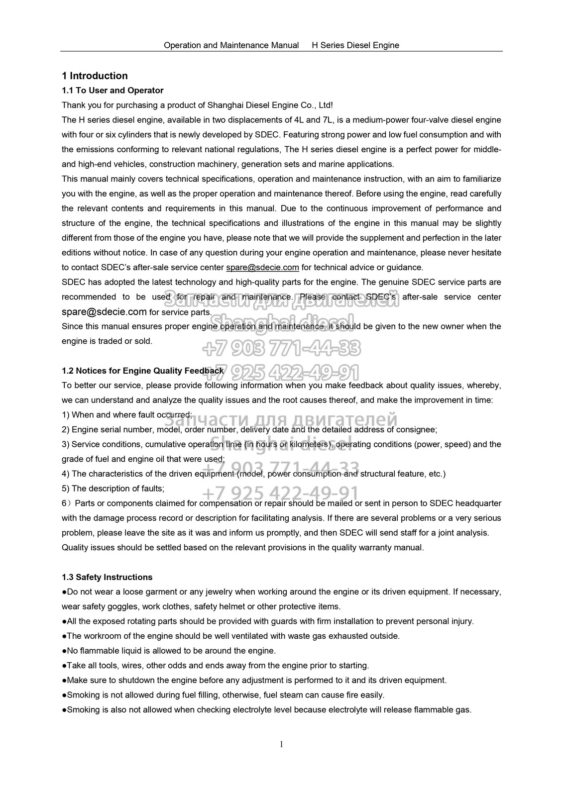 Руководство по эксплуатации и техническому обслуживанию дизельных двигателей серии Н Shanghai diese