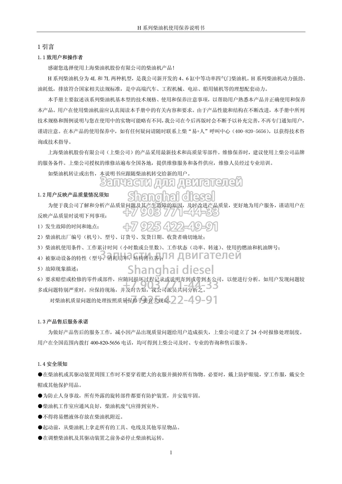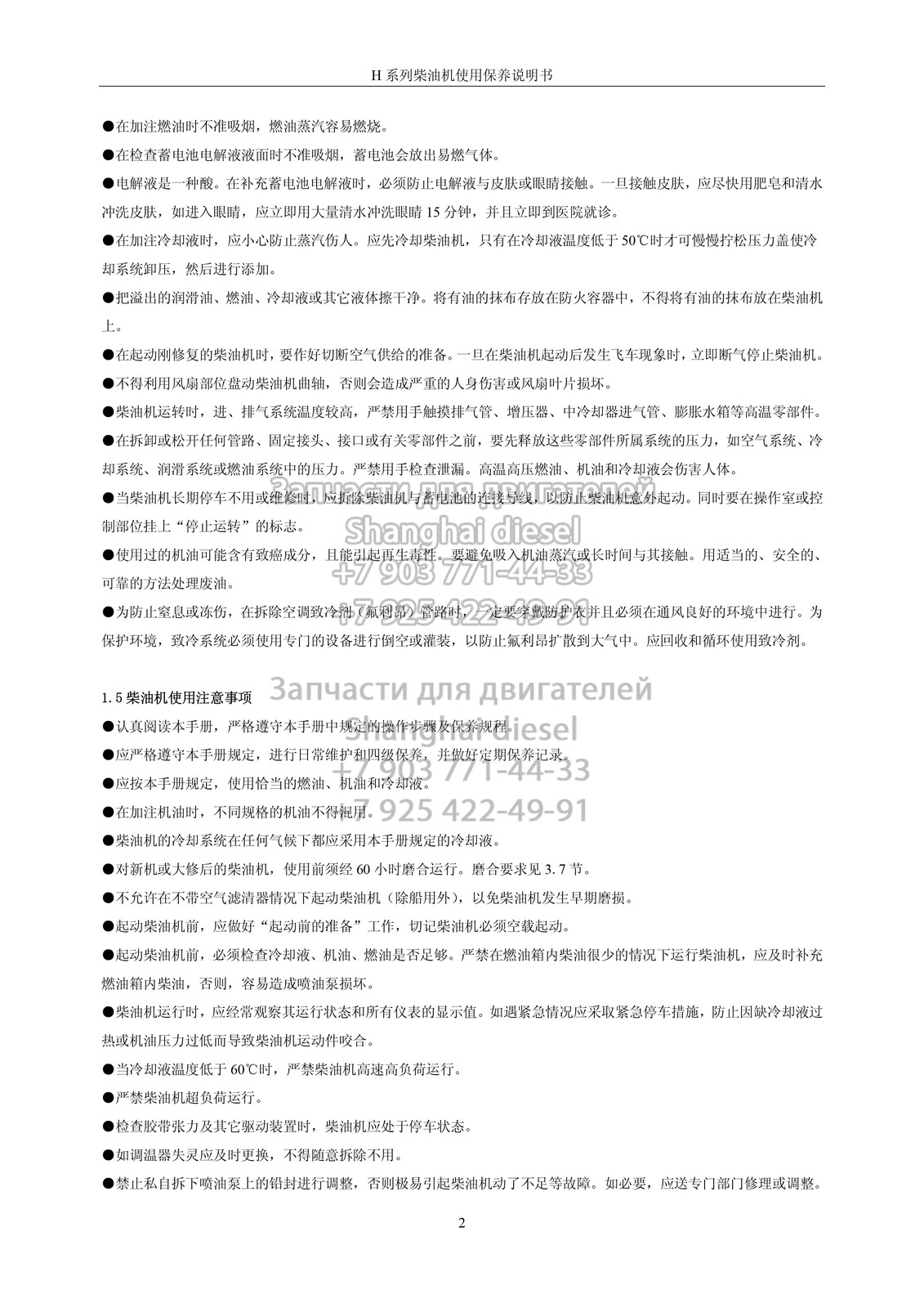 Руководство по эксплуатации и техническому обслуживанию дизельных двигателей серии Н Shanghai diese