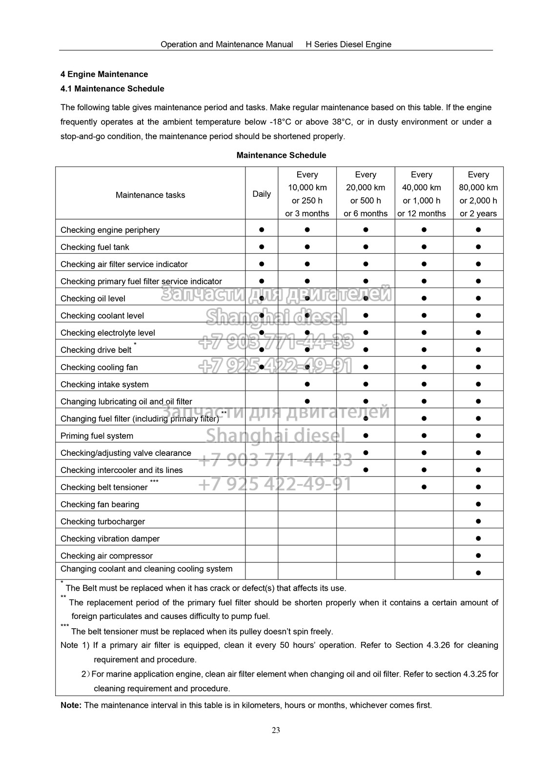 Руководство по эксплуатации и техническому обслуживанию дизельных двигателей серии Н Shanghai diese