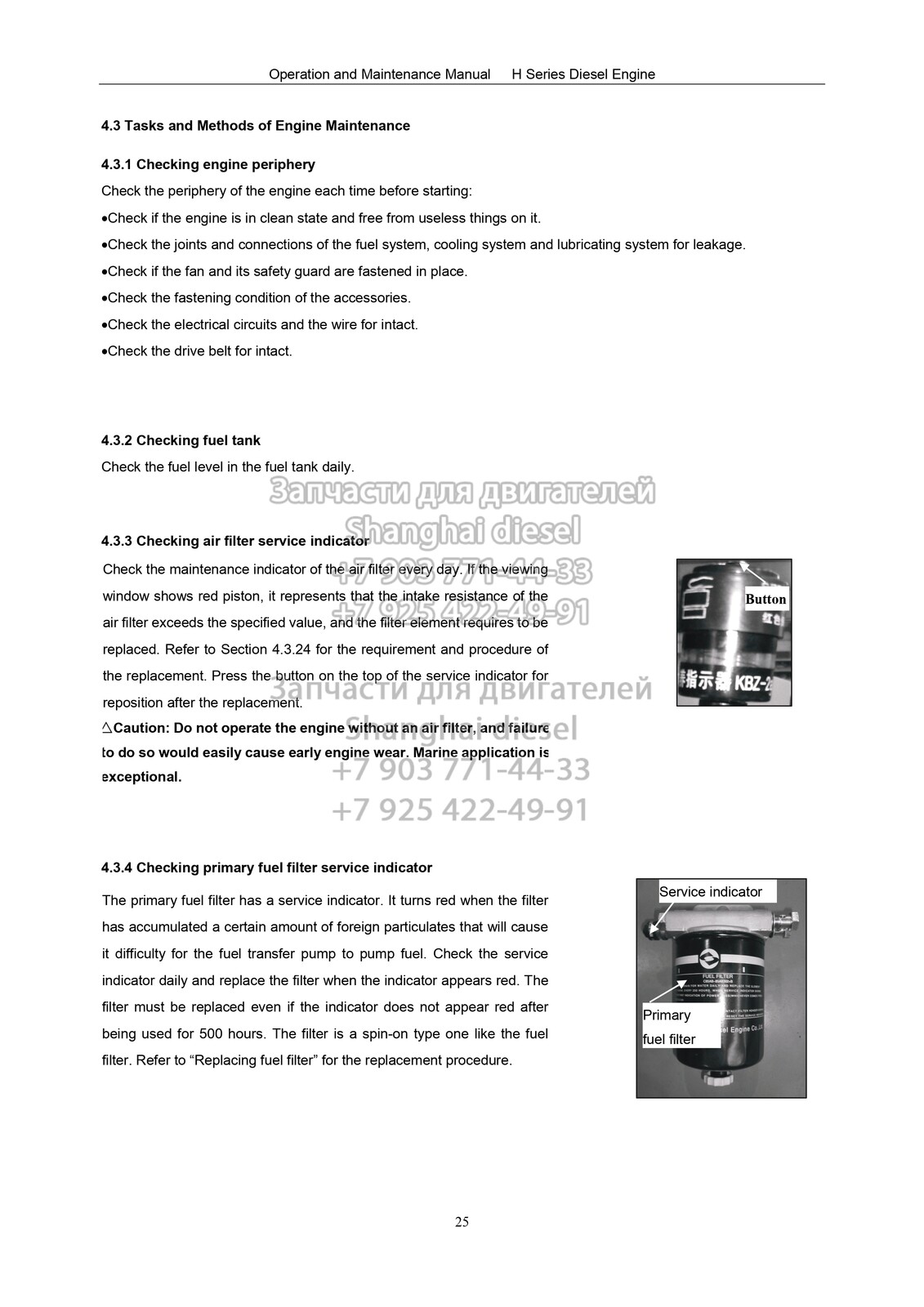 Руководство по эксплуатации и техническому обслуживанию дизельных двигателей серии Н Shanghai diese